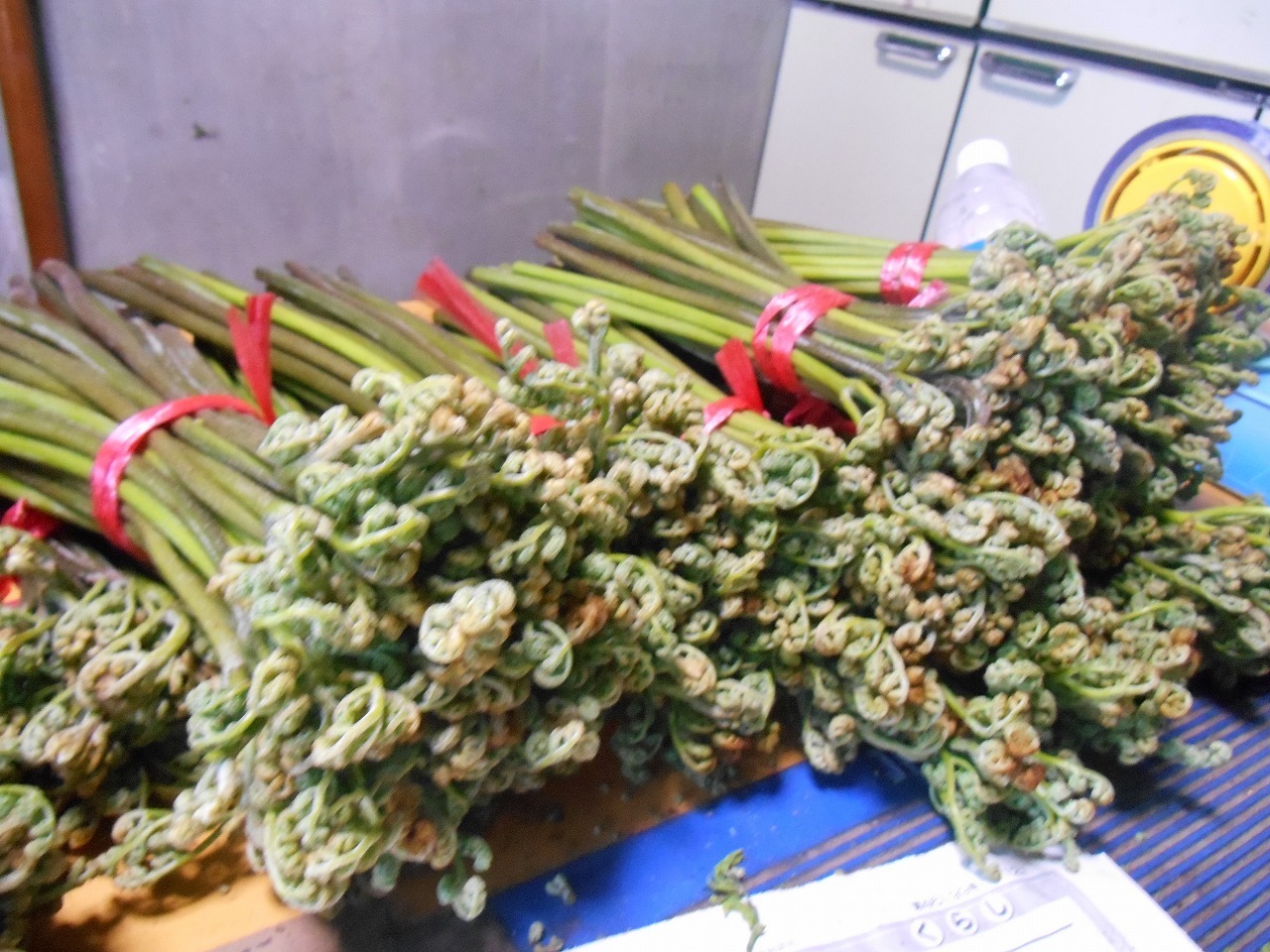 ワラビのお浸し、煮物、一本漬を食べたら、忘れられない美味しさです。大舟のワラビは、どこに出しても恥ずかしくない極太の高級品です。さすが山菜の女王!